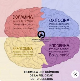 Oxitocina: Es una hormona producida en el cerebro que se relaciona con el afecto, la conexión social y el bienestar emocional. Se libera durante el contacto físico y la interacción social, y se cree que tiene un papel en la sensación de felicidad y bienestar en las relaciones personales.