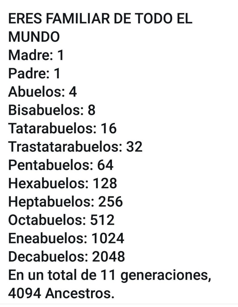 A lo anterior debe agregarse que todos los ancestros tuvieron que nacer, crecer y reproducirse, “lo que equivale a una probabilidad de 1 entre 10 elevado a 45.000. Por último, la posibilidad de que en todas esas generaciones se unieran el espermatozoide y el óvulo que dieron lugar a uno de los ancestros es de 1 entre 10 elevado a 2.640.000.
