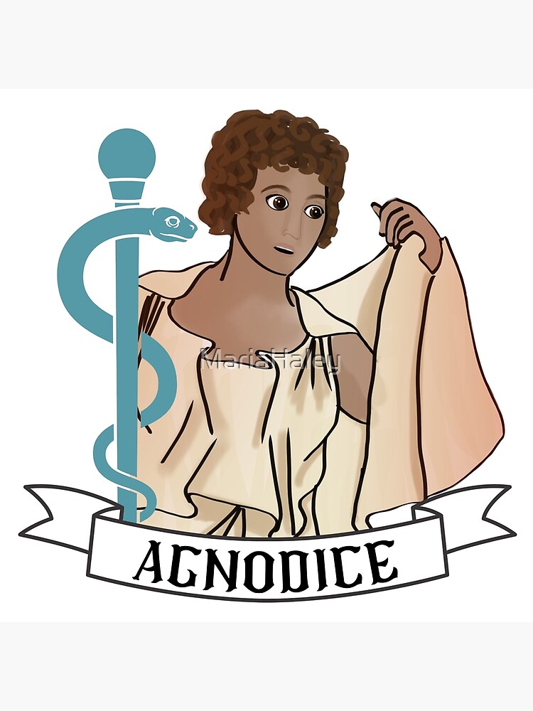 «En la antigua Grecia, las mujeres tenían prohibido estudiar medicina hasta que alguien infringió la ley. Nacida en el año 300 a. C., Agnodice se cortó el pelo e ingresó a la escuela de medicina de Alejandría vestida de hombre. Mientras caminaba por las calles de Atenas después de completar su educación médica, escuchó los gritos de una mujer en trabajo de parto. Sin embargo, la mujer no quería que Agnodice la tocara a pesar de que tenía mucho dolor, porque pensó que Agnodice era un hombre. Agnodice demostró que era una mujer quitándose la ropa sin que nadie la viera y ayudó a la mujer a dar a luz a su bebé.