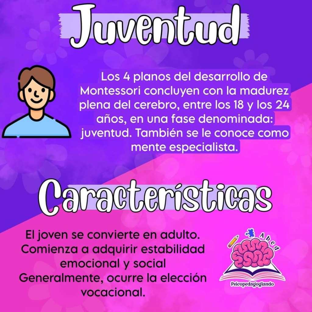 La Dra. Montessori identificó cuatro etapas o planos del desarrollo que representan periodos evolutivos del ser humano y permiten explicar su comportamiento.
