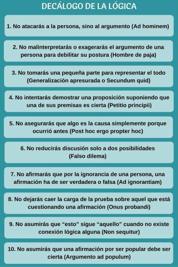 - No afirmarás que por la ignorancia de una persona, una afirmación ha de ser verdadera o falsa (Llamada de ignorancia o Ad ignorantiam)