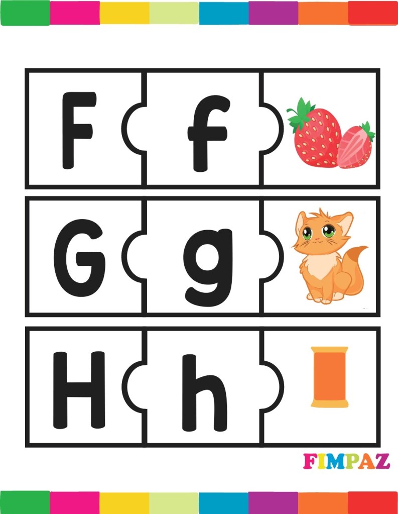 Rompecabezas con letras tanto en mayúsculas como minúsculas y una imagen.