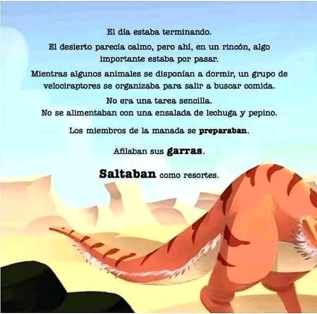 Una manada de velociraptors se prepara para salir a busca comida en medio el desierto, pero Velox solo piensa en ser el héroe de la noche. De pronto, se dará cuento de que el peligro está muy cerca como nunca antes lo había sentido.