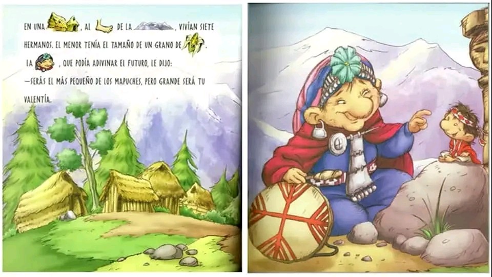 En esta adaptación el Pulgarcito de los hermanos Grimm es mapuche y a través de las palabras y dibujos nos cuenta su historia pero también la de su rica cultura.