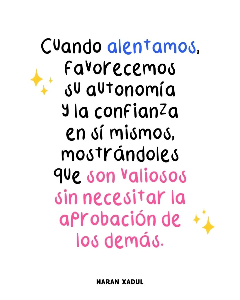 Por ejemplo, se suelen juzgar o evaluar lo que ven en lugar de describirlo, como qué hermoso dibujo hiciste, eres muy trabajador por terminar la tarea, etcétera. Esto a la larga causa dependencia y espera el reconocimiento de los demás para nutrir su autoestima.