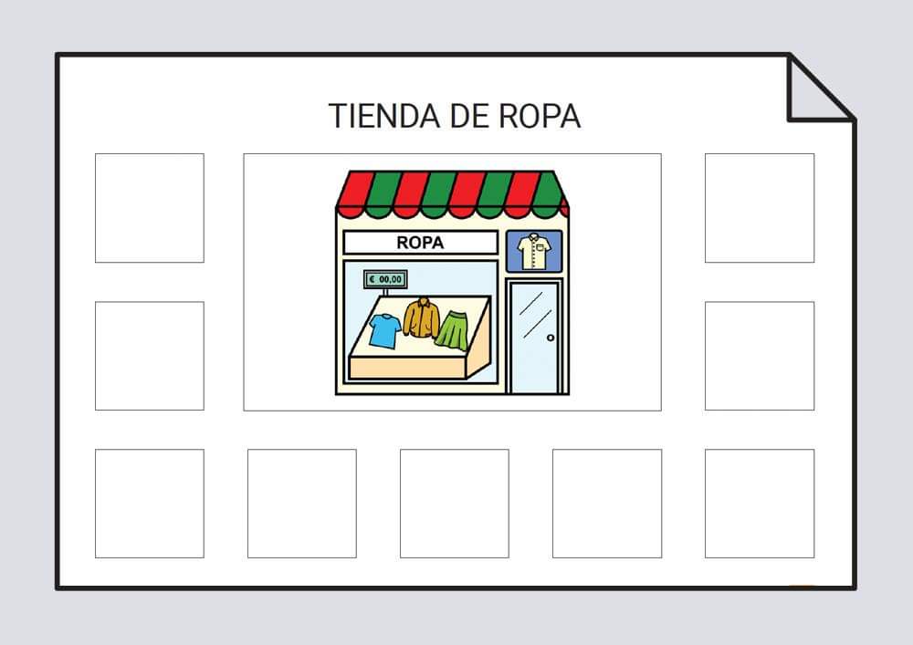 ✂ Para trabajar con este material se recortan las distintas fotografías que se encuentran al final del documento y se van colocando en las láminas de las tiendas correspondientes.