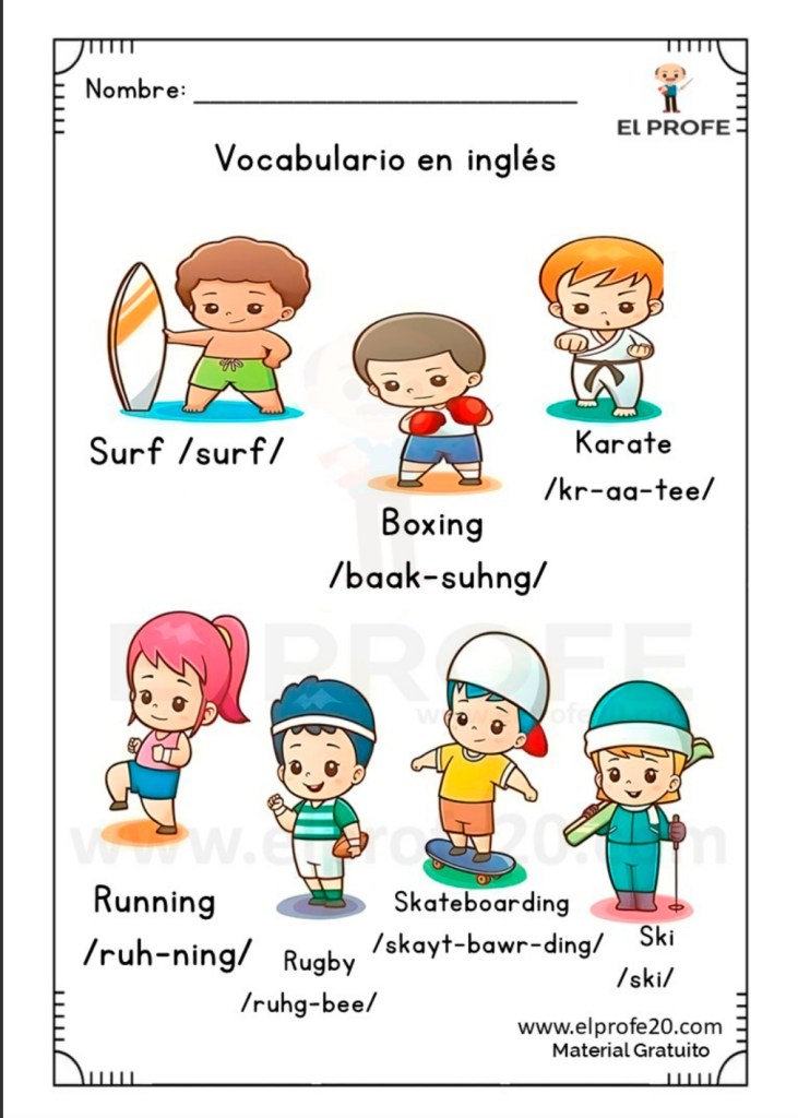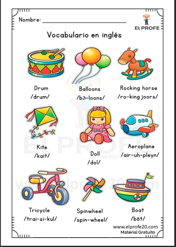 Estas fichas son una herramienta esencial para que los niños y niñas aprendan nuevas palabras en inglés de manera fácil y divertida.