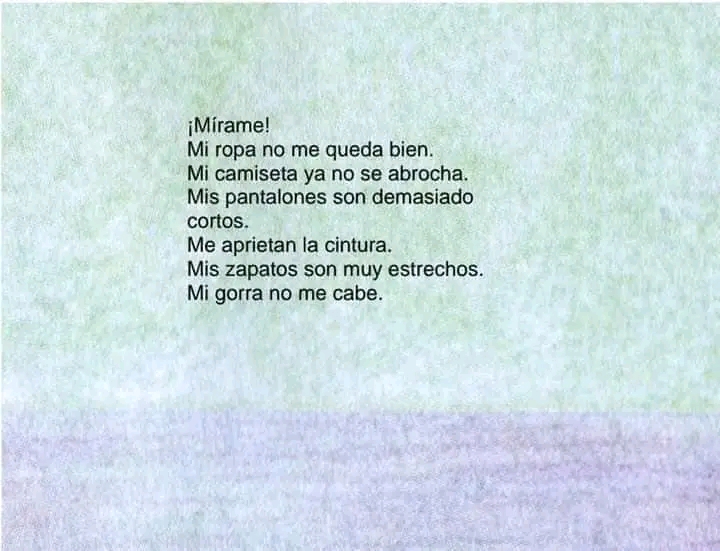 Cuando un niño está creciendo, la ropa se le hace pequeña. Mirando las fotos desde que nació se ve cómo ha ido creciendo y creciendo, y cómo sus facciones se han ido modificando, y los brazos, las piernas y todo el cuerpo se han ido alargando. Por dentro sus órganos, huesos, músculos, cerebro, pulmones, corazón y estómago, también han crecido, mientras la piel que envuelve su cuerpo ha ido adaptándose a su crecimiento. La mayoría de los niños crece hasta llegar a cierta edad, pero hay partes del cuerpo que nunca dejan de crecer: el pelo, las uñas. No todos los niños crece al mismo ritmo. Algunos crecen dando un estirón. ¡Todo el mundo crece a su manera!