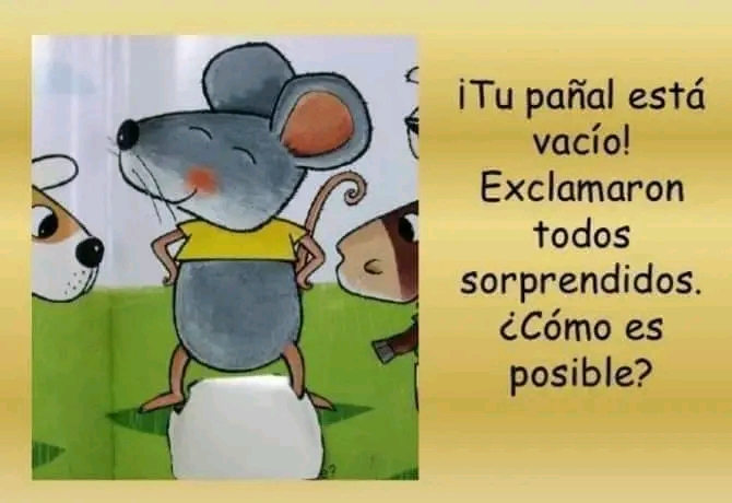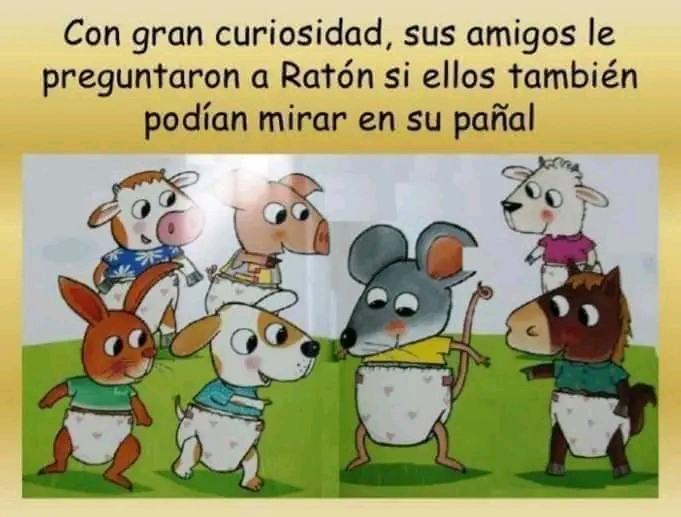 Ratón es muy curiouso. Tiene que husmear todo, hasta los pañales de sus amigos. Husmea, uno por uno, en los pañales de Liebre, Cabra, Perro, Vaca, Caballo y Cerdo. Por supuesto, sus amigos también quieren mirar el pañal de Ratón. Y se llevan una gran sorpresa.