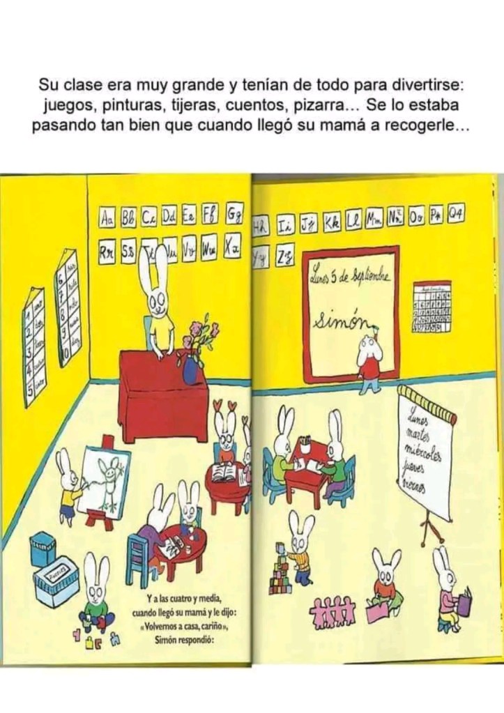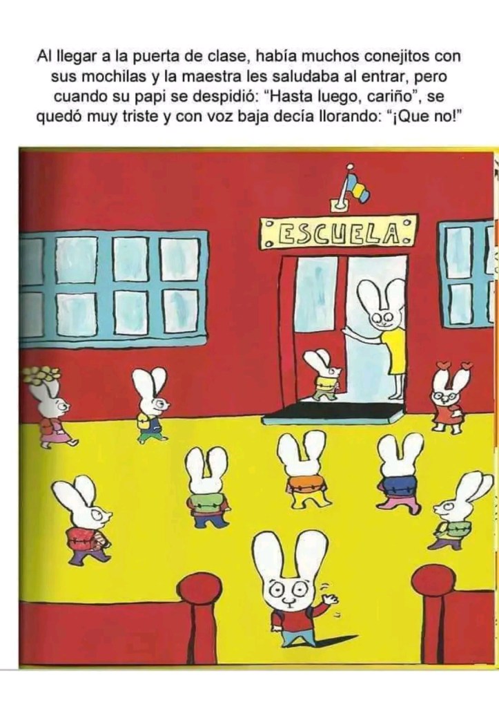 Había una vez un conejito muy pillo al que ya conoces. Cuando su mamá le dijo: "¡Mañana es tu primer día en la escuela, cariño!" , él respondió: "¡No quiero!"