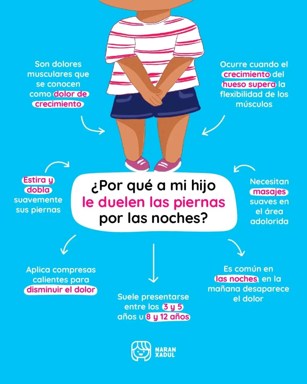 Cuando estos dolores son únicamente en la noche, se puede decir que son por “crecimiento” y aumentan cuando durante el día hubo más actividad física de lo normal.