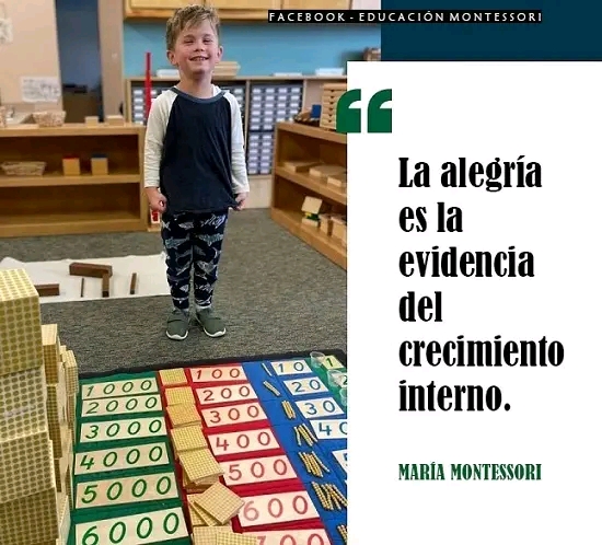 De acuerdo con María Montessori, un niño con desarrollo pleno es un niño feliz. En otras palabras, cuando los niños aprenden de forma natural y se desarrollan al máximo de su potencial, el resultado es un estado espontáneo de pura alegría.