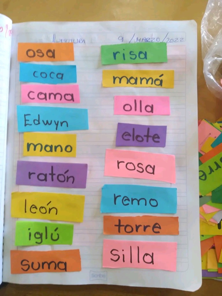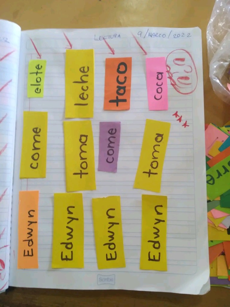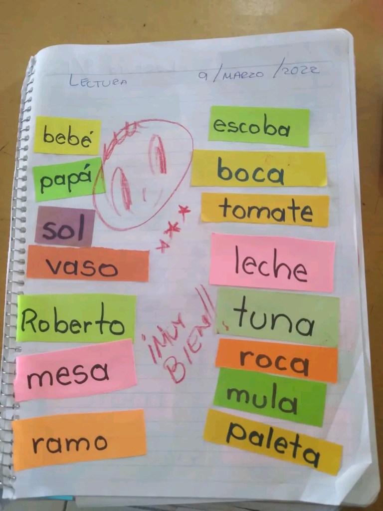 💟 Cada palabra que los niños sean capaces de leer, la pegan en su cuaderno.