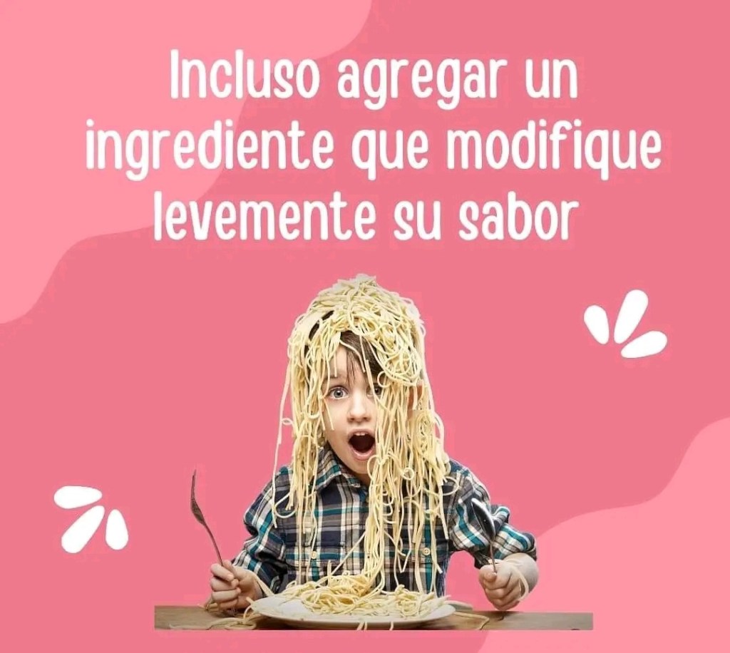 🚫 Si tu hijo/a no acepta cambios en el alimento, comienza cambiando su plato, cubiertos y ubicación en la mesa, luego continuas con cambios en los alimentos pequeños para que pueda aceptarlos.
