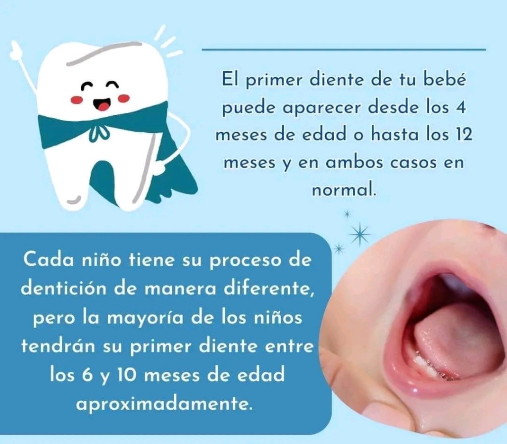 😰 Si bien el primer diente puede aparecer entre los 6 y 10 meses de edad, pero cada niño es distinto y lleva su proceso de manera diferente, si tu hij@ tiene 12 meses y aún no tiene su primer diente, no te estreses, puede ser normal.