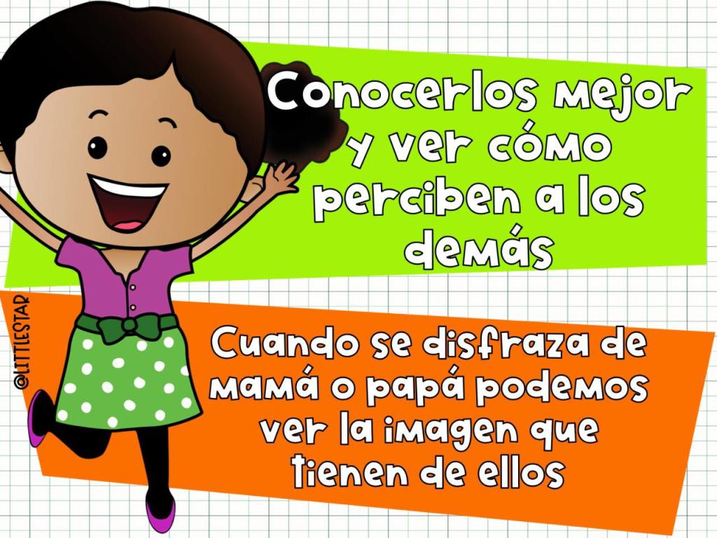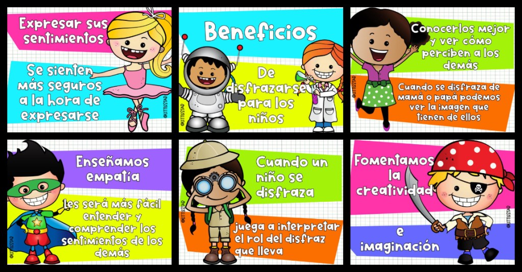Sara Tarrés, en su blog Mamá Psicologa Infantil explica que cuando un niño se disfraza está interpretando los gestos y la forma de ser de una persona o personaje, real o imaginario. A través de este juego despliega toda su imaginación, su lenguaje y las habilidades sociales. Sara Tarrés enumera los beneficios que tiene para los niños jugar a disfrazarse: