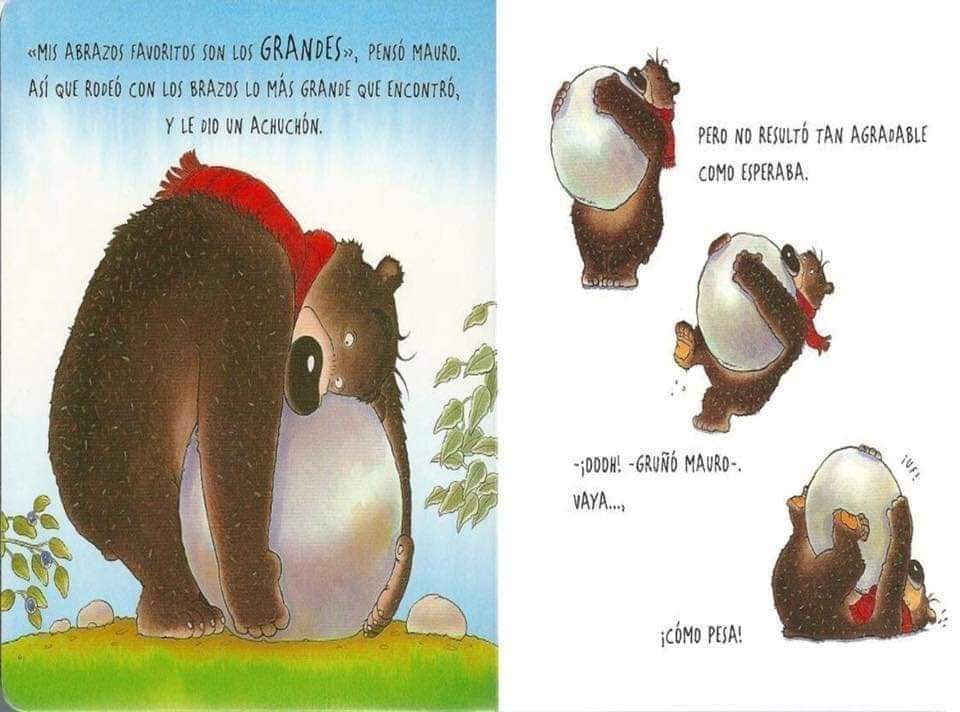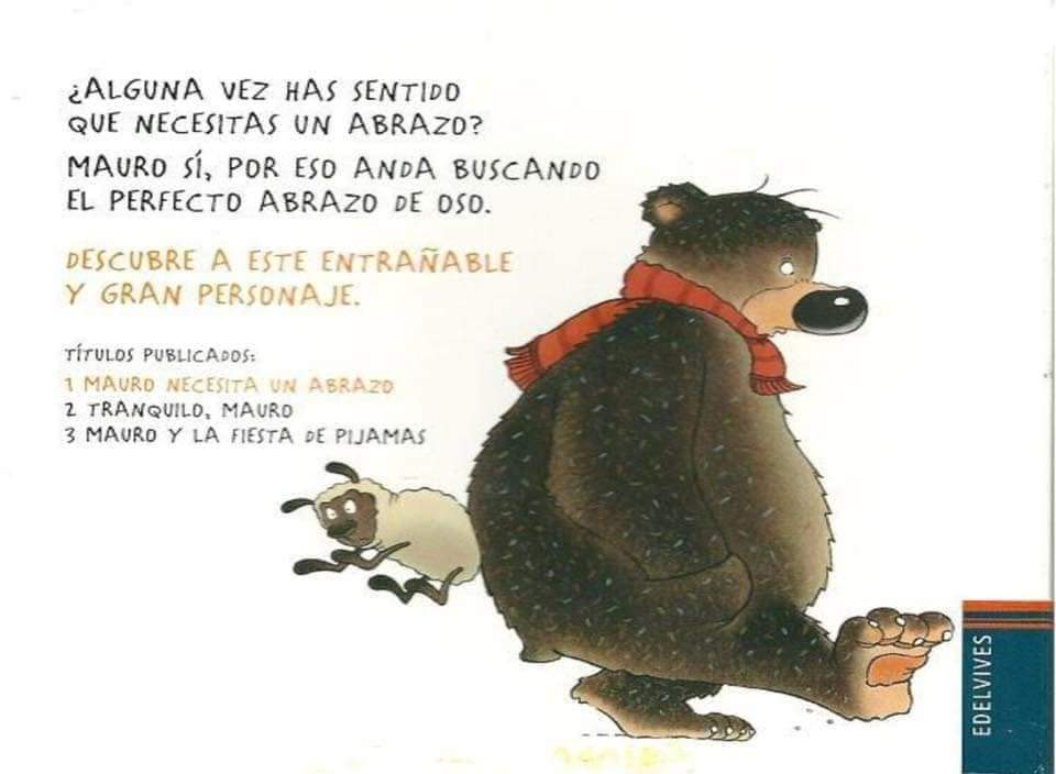 Mauro se levanta un buen día con unas terribles ganas de dar un abrazo a alguien, así que abraza las piedras y los árboles del bosque, los matorrales, las ovejas… pero nada de eso lo consuela. Estupendo para trabajar los sentimientos con los más pequeños de la casa.